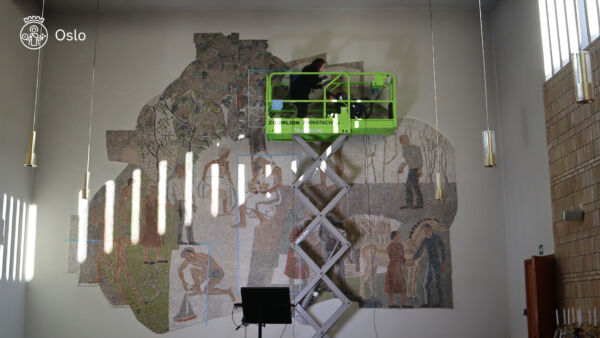 Konservering av Kåre Jonsborgs mosaikk Såmannen (1961) på Østre gravlund
