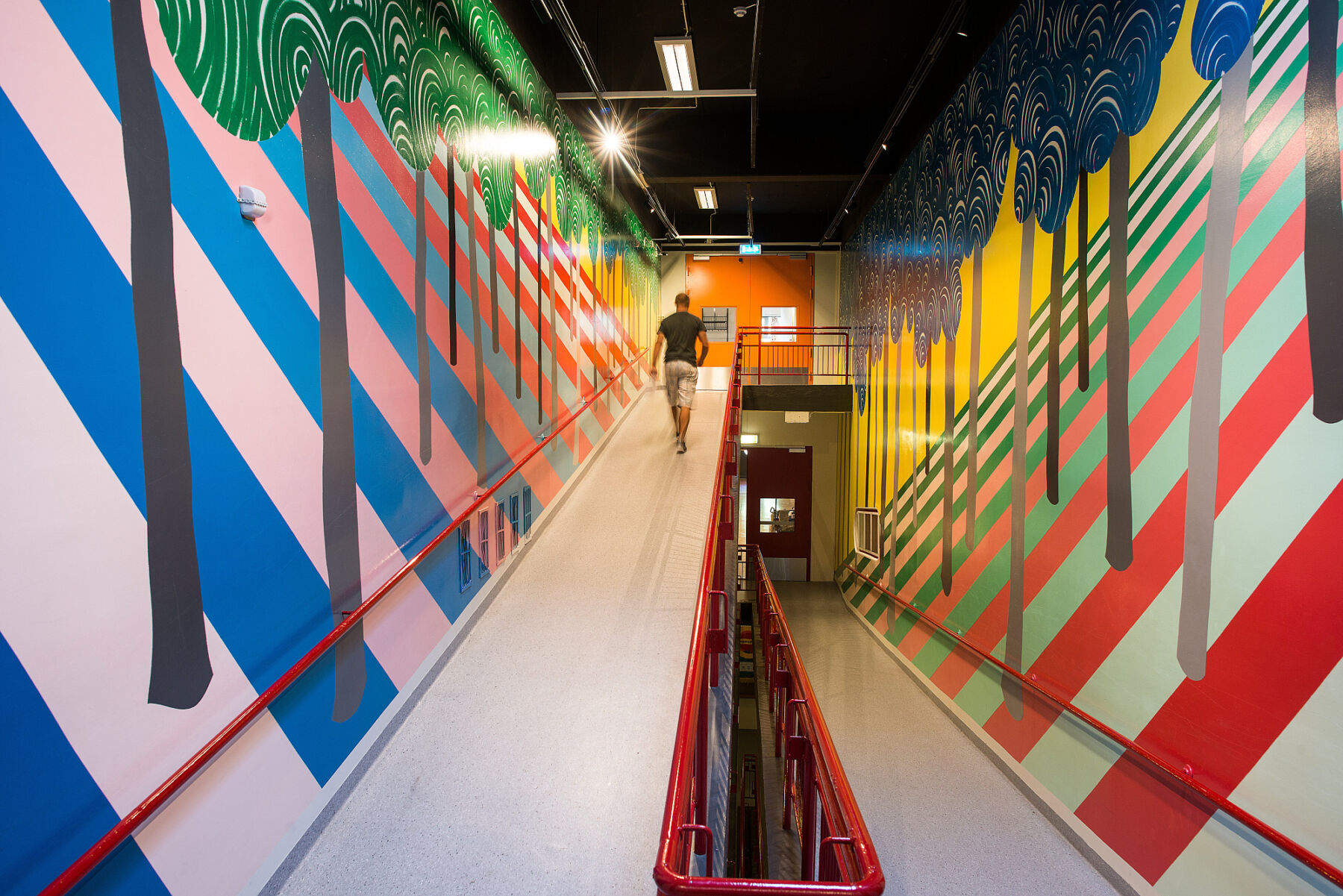 Samarbeidet mellom arkitekten og kunstneren var en suksess, og Tostrup ønsket derfor Kleiva velkommen til nytt kunstnerisk oppdrag på Ellingsrudåsen skole. Det bestod i all hovedsak av å male veggene tilhørende byggets usedvanlige rampe, som ifølge arkitektene var inspirert av Pompidou-senterets fargerike og nyskapende arkitektur i Paris, i tillegg til å utsmykke to enkeltstående vegger i skolens samlingssal.